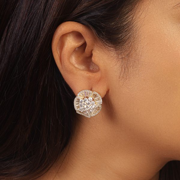 Dimensions: Length-2cm Weight-Only 4gm per Earring Delicate yet captivating, the Flower Diamond Earrings – Gold bloom with graceful charm and luminous brilliance. Crafted in a radiant Golden finish and shaped into a soft floral silhouette, each petal is studded with shimmering diamonds that reflect elegance in every movement. Perfect for festive occasions, date nights, or chic daytime looks, these earrings bring a refined floral flair to any outfit effortlessly transitioning from classic to contemporary with poise.
