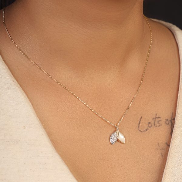 Dimensions: Length- Chain with Pendant at midpoint 22 cm plus 6 cm Extender Metal – Stainless Steel with 18KT gold plating, which means that under proper care, the polish can last for years Further Details-Anti tarnish Sleek and sophisticated, the Fin Diamond Pendant – Gold is a statement of modern elegance. Inspired by fluid, organic shapes, this pendant features a gracefully curved design adorned with shimmering diamonds, reflecting both movement and brilliance. The polished gold finish enhances its refined allure, making it a timeless addition to any jewellery collection. Versatile and effortlessly chic, it pairs beautifully with structured blazers, flowing dresses, or minimalist ensembles. Whether worn solo for a subtle statement or layered for a contemporary edge, let the Fin Diamond Pendant add a touch of sophistication to your style.