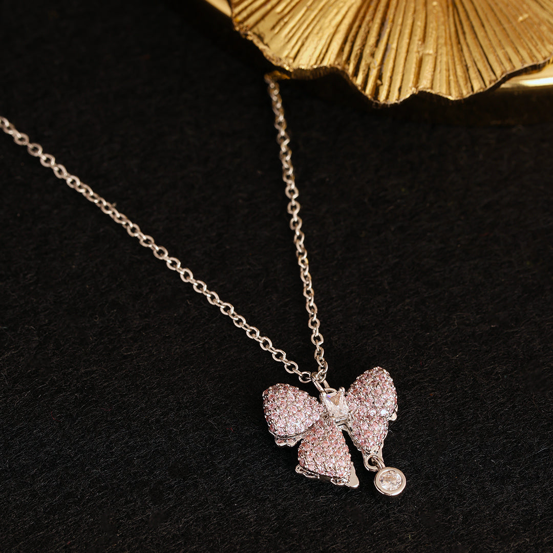 Dimensions: Length- Chain with Pendant at midpoint 21.5 cm plus 6 cm Extender Metal – Stainless Steel with 18KT gold plating, which means that under proper care, the polish can last for years Further Details-Anti tarnish Make a statement with the Bow Diamond Pendant – Gold, a symbol of grace and refinement. Designed with an exquisite bow silhouette and adorned with dazzling diamonds, this piece embodies elegance and timeless allure. The radiant gold finish enhances its brilliance, making it a versatile addition to your jewellery collection. Whether paired with a sleek evening dress, a tailored blazer, or a casual monochrome ensemble, this pendant effortlessly elevates your style. Wear it as a standalone statement or layer it for a contemporary, fashion-forward touch. Let this exquisite piece redefine sophistication in your everyday look.