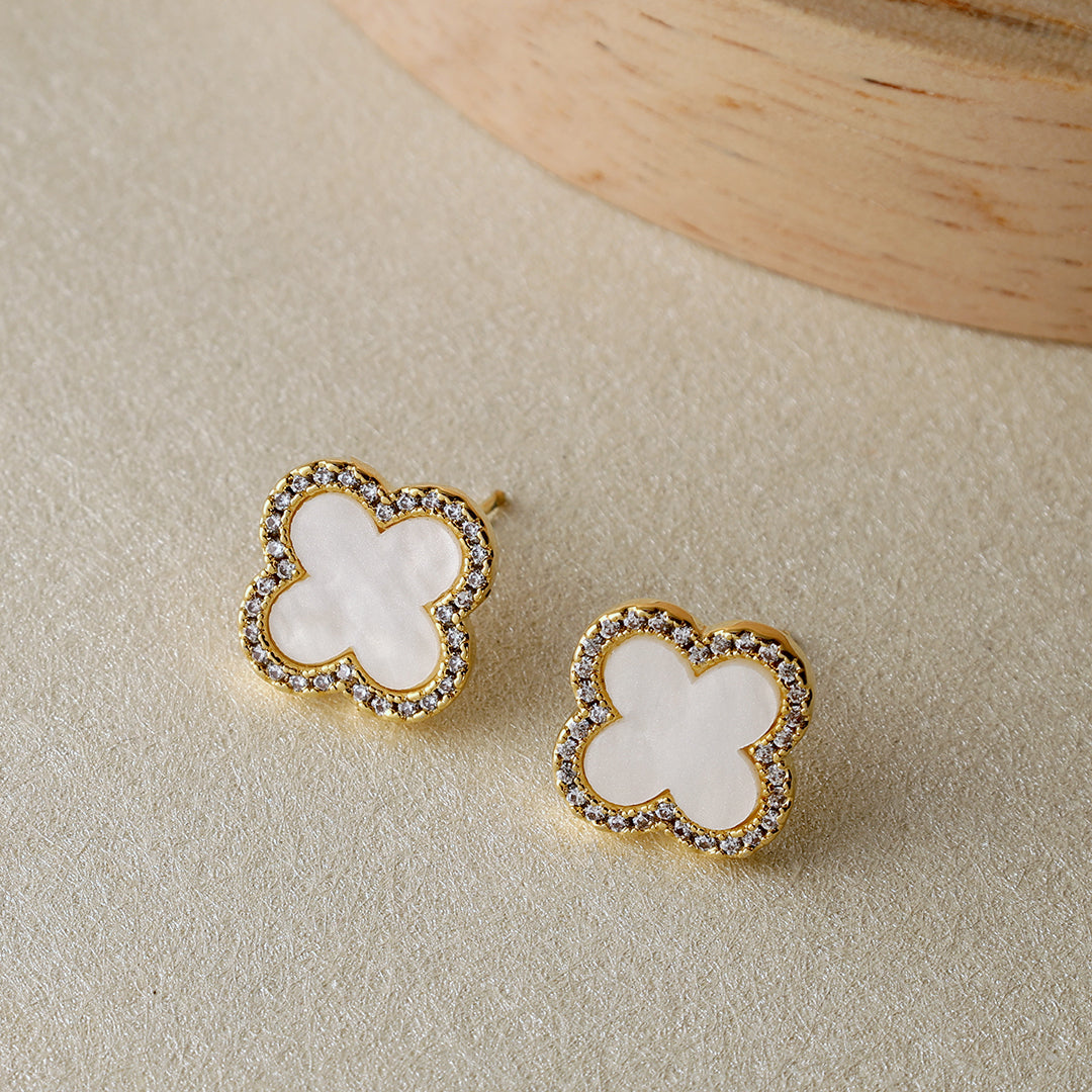 Dimensions: Length-1cm Weight-Only 1gm per Earring A fusion of elegance and mystique, the White Diamond Clover Earrings – Gold are a symbol of sophistication and charm. Featuring a timeless four-leaf clover design, these earrings are adorned with sparkling diamonds set in a luxurious gold finish. Perfect for evening soirées, chic brunches, or stylish outings, they add a refined yet bold touch to any look. Whether paired with a sleek dress or a tailored ensemble, these earrings make a statement of effortless glamour.