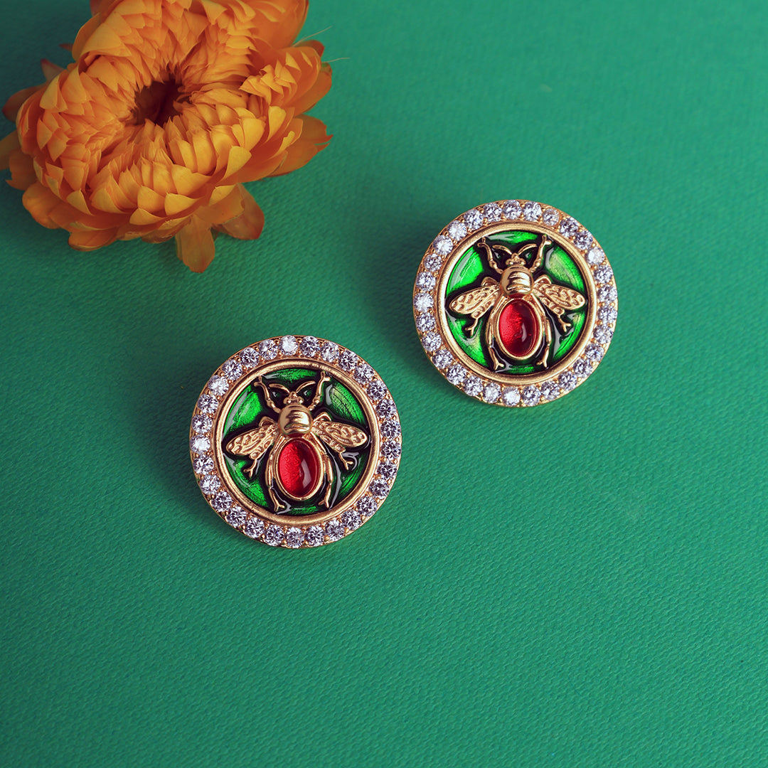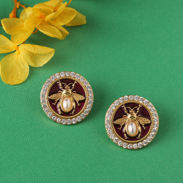 Dimensions: Length-2cm Weight-Only 5gm per Earring A charming ode to nature’s beauty, the White Fly Honey Bee Earrings exude grace and whimsy. Crafted in a radiant gold finish, these delicate yet striking earrings feature an intricate bee motif adorned with golden wings, symbolizing energy and transformation. The fine detailing and luxurious sheen make them the perfect balance between playful elegance and timeless sophistication. Whether paired with a chic black dress or a casual day ensemble, these earrings add a touch of enchantment to every look.