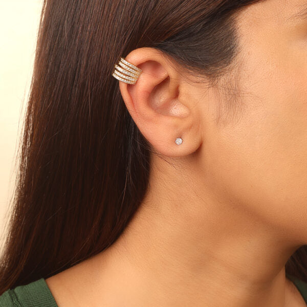 Dimensions: Length-1cm Weight-Only 2gm per Earring Sculptural and bold, the Pink Five-Layer Cuff Earrings make a striking statement with their layered design. The delicate pink tones are elegantly stacked, creating a modern and sophisticated look. These earrings are perfect for adding a touch of glamour to your evening attire or pairing with a sleek, minimalistic outfit for an elevated, contemporary style. Whether worn for a night out or a special occasion, these cuff earrings offer a bold yet refined touch of elegance.