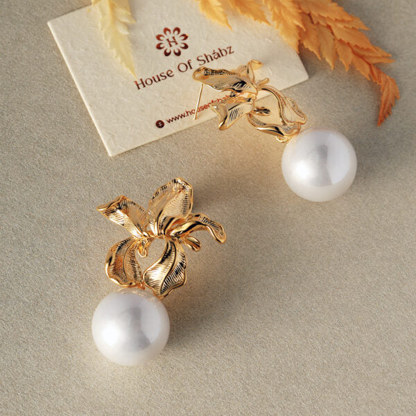 Dimensions: length-5cm Weight-Only 10gm per Earring Delicately crafted to reflect the beauty of nature, the Flora Pearl Earrings blend botanical artistry with classic sophistication. The intricate gold floral motif, textured to mimic the gentle curves of petals, gracefully cradles a luminous pearl drop exuding effortless charm and refinement. Perfect for evening soir?es, special occasions, or elevating everyday elegance, these earrings are a true celebration of femininity and grace.