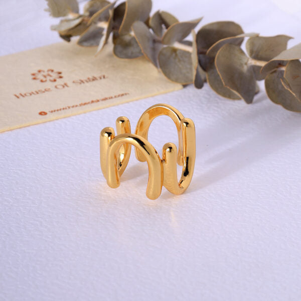 Dimensions: 6.5+Free Size The Uriyana Finger Ring is a sculptural masterpiece that redefines contemporary elegance. Crafted in a fluid, wave inspired design, its bold, openwork structure makes a statement while maintaining an air of effortless sophistication. The high-shine gold finish adds a touch of luxury, perfect for the modern minimalist who loves standout accessories. Whether paired with sleek eveningwear or layered with dainty rings for a trend-forward look, this architectural beauty is the ultimate expression of chic, fashion-forward style.