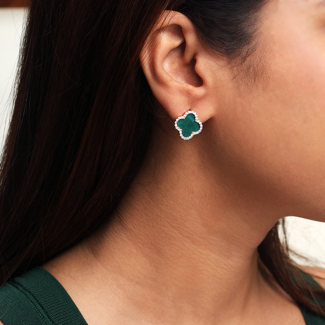 Dimensions: Length-1cm Weight-Only 2gm per Earring Embrace timeless charm with the Green Pattern Clover ? Silver, a refined piece symbolizing luck and elegance. Featuring a striking green clover motif set in a polished silver finish, this pendant exudes sophistication with a modern touch. Its versatile design makes it perfect for both casual outings and special occasions. Whether layered with delicate chains or worn as a statement piece, this pendant adds a touch of grace and vibrancy to your jewellery collection.