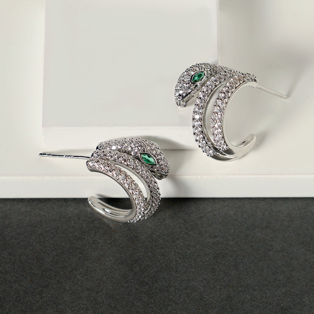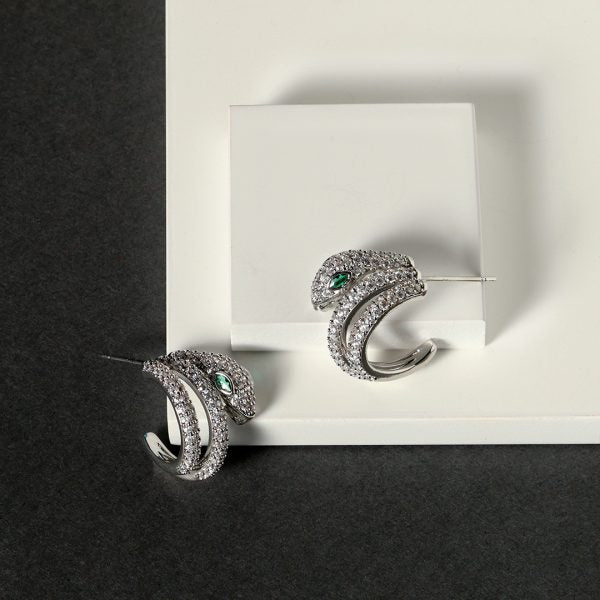 Dimensions: Length-2cm Weight-Only 2gm per Earring Mystique, but make it luxe. The Green Eyed Serpent Earrings slither their way into statement territory with a hypnotic design that coils with quiet power. Gleaming gold curves wrap gracefully into a serpent form, while deep green stones shimmer as piercing eyes mysterious, alluring, and just a little dangerous. Perfect for evening soirées, cocktail nights, or when your dinner plans call for a little drama. Style them with sleek hair, bold liner, and a knowing smile the kind that keeps them guessing.