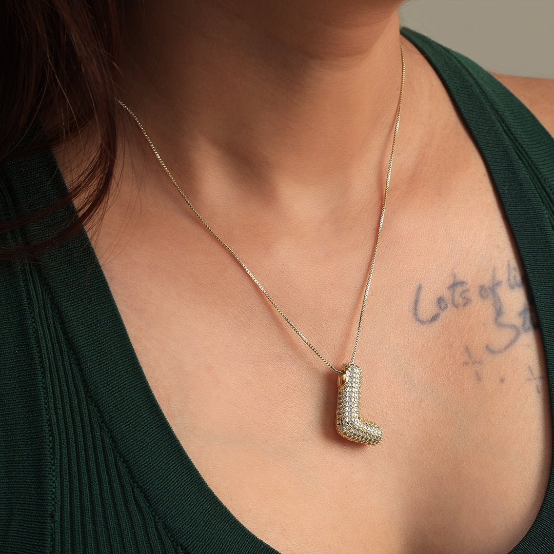 Celebrate individuality with the Alphabet Pendant, a timeless symbol of self-expression. Designed to dazzle, its sleek silhouette is encrusted with shimmering stones, capturing the perfect balance of sophistication and charm. Whether worn solo for a minimal statement or layered for a bold look, this pendant complements every style effortlessly.